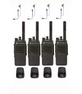 Specificaties Motorola DP2400 met beveiligingoortje:- Frequentie: UHF- Frequentiebereik: 403-527 MHz- Vermogen: 5 Watt- Aantal kanalen: 16- Afmetingen: 122 x 56 x 36 mm- Gewicht: 264 gram- Levensduur batterij: ca. 12 uur- IP67 stof- en waterdicht- Bedrijfstemperatuur: -30°C tot +60°C